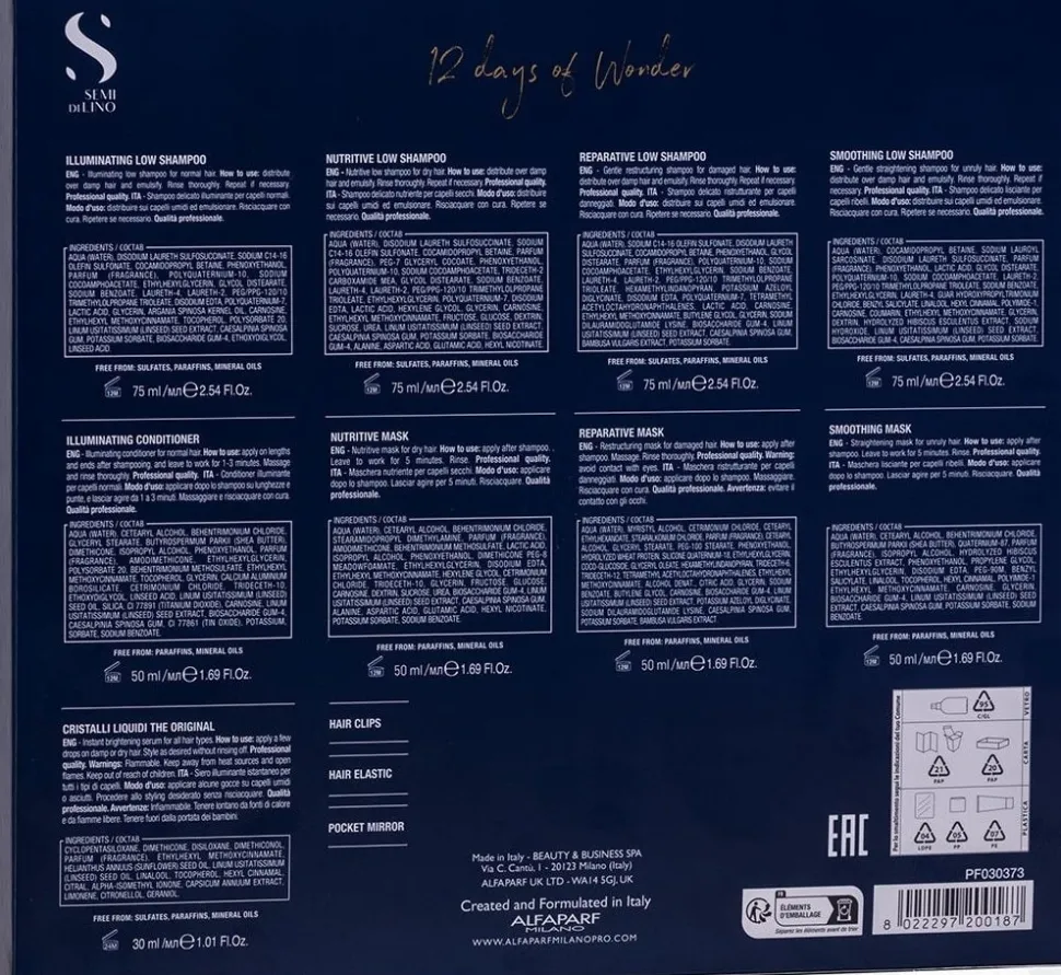 Bag hver dør gemmer sig en eksklusiv hårplejeoverraskelse fra Alfaparf Milanos ikoniske Semi di Lino-kollektion – formuleret til at genoprette, fugte og tilføre betagende glans. Uanset om dit hår har brug for ekstra næring, hydrering, styrke eller glathed, har denne elegante kalender alt, hvad du behøver for smukt, sundt udseende hår.