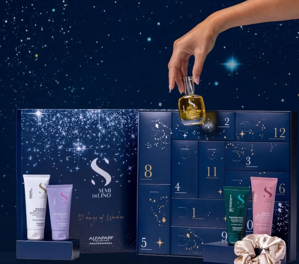 Alfaparf Milano Semi di Lino Julekalender – fordi dit hår fortjener et strejf af festlig magi.