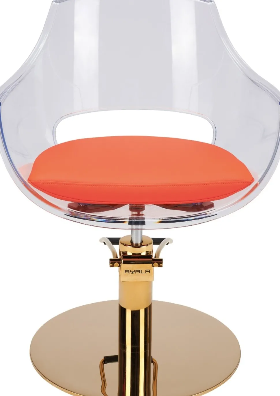 Stylingstolen GHOST, lidt inspireret af den ikoniske model Louis Ghost, er en klassiker i vores sortiment. Den gennems transparente sæde lavet af polycarbonat ser skrøbelig ud, men lad dig ikke narre – dette plastmateriale er mekanisk holdbart, og dets styrke og modstandsdygtighed er tættere på aluminium. For at sikre dine kunders komfort er der en blød pude placeret på sædet. Du kan bestille puden i enhver farve fra vores udvalg, men hvorfor ikke bestille flere i forskellige farver? Du kan skifte sædepuderne for at matche dit humør, ugedag eller endda sæson. Omkostningerne er små, men forvandlingen er stor. Afhængig af den valgte base passer stolen perfekt ind i moderne, klassiske, hippie eller endda glamourøse interiører. Den lette visuelle udformning overvælder ikke omgivelserne, men vil blive en interessant tilføjelse.
