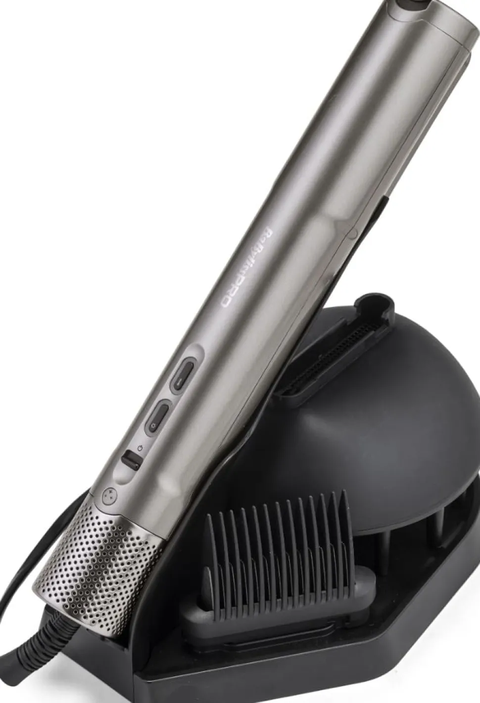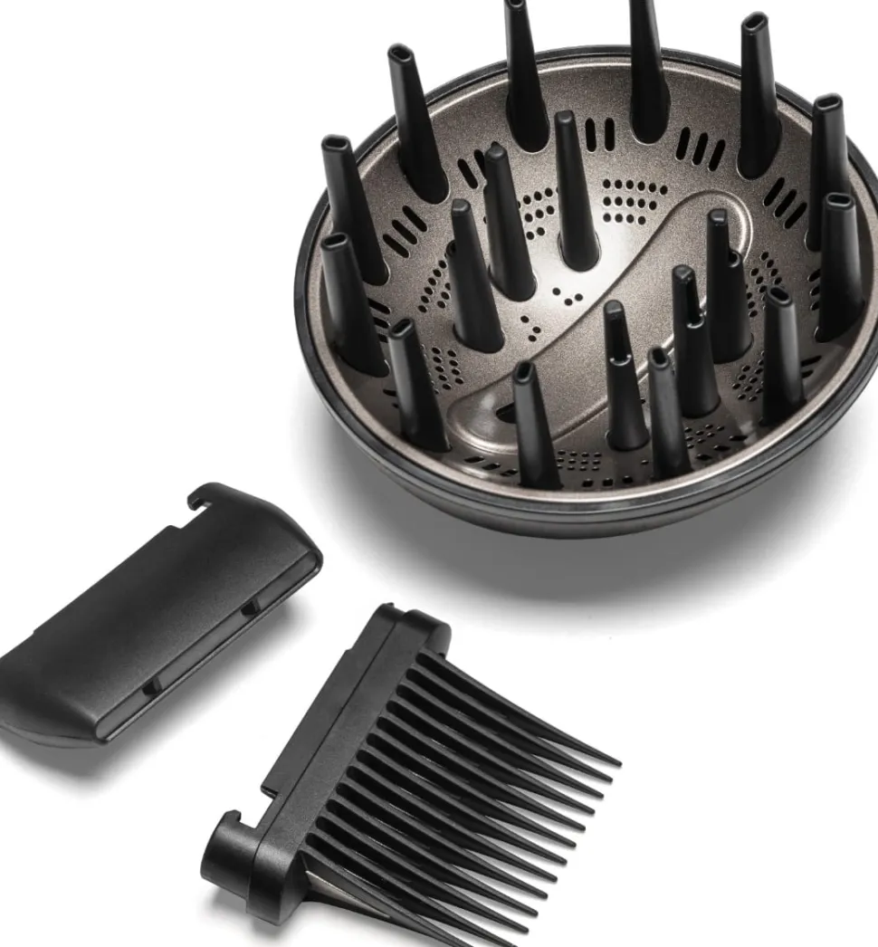- Alt-i-en stylingløsning: Tilbehør og secure-fit-vedhæftninger til alle hårtyper og stylingbehov.
