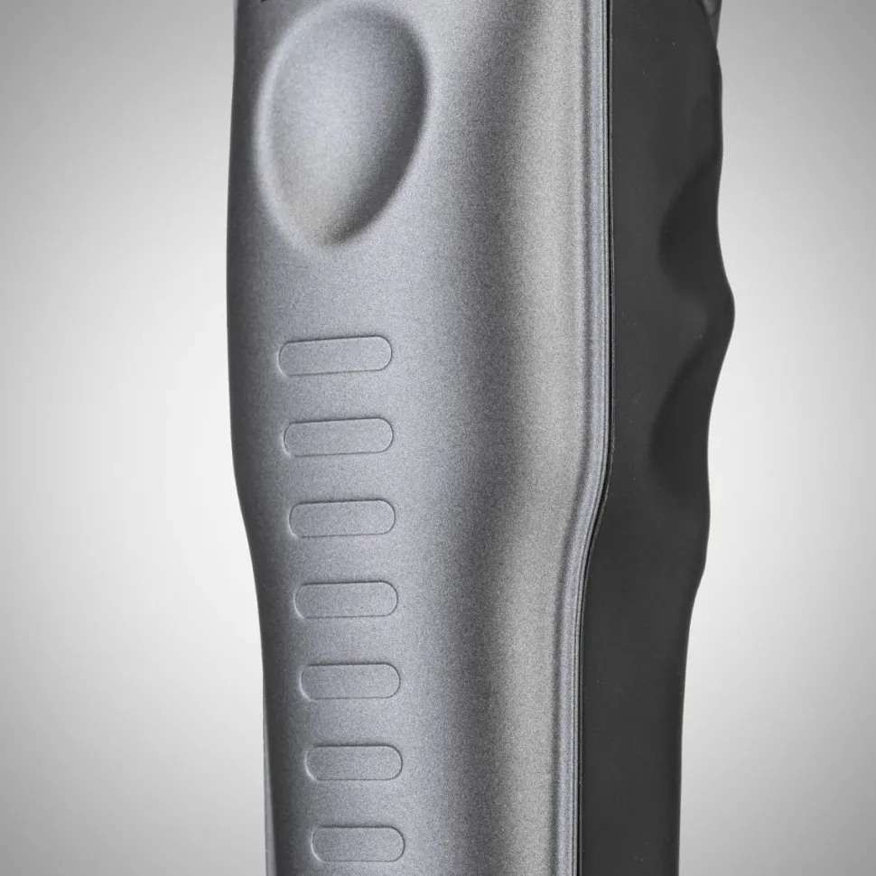Den grå FXONE LO-PROFX hårtrimmer har det nye udskiftelige FXONE-batteri med en hurtigudløserknap. Trimmeren tilbyder en ny N1 børsteløs motor med dobbelte kuglelejer for større effektivitet. Trimmeren leveres som standard med det nye Blue Titanium standard-tand T-blad, som er allergivenligt og zero-gap justerbar. Brug denne professionelle lithium-ion-hårtrimmer til sprøde kanter, hårde linjer og alt andet detaljearbejde. Tjek BaBylissPRO® FXONE Lo-ProFX High Performance Low-Profil Clipper for matchende FXONE-værktøjer, alle kompatible med det samme batteri.