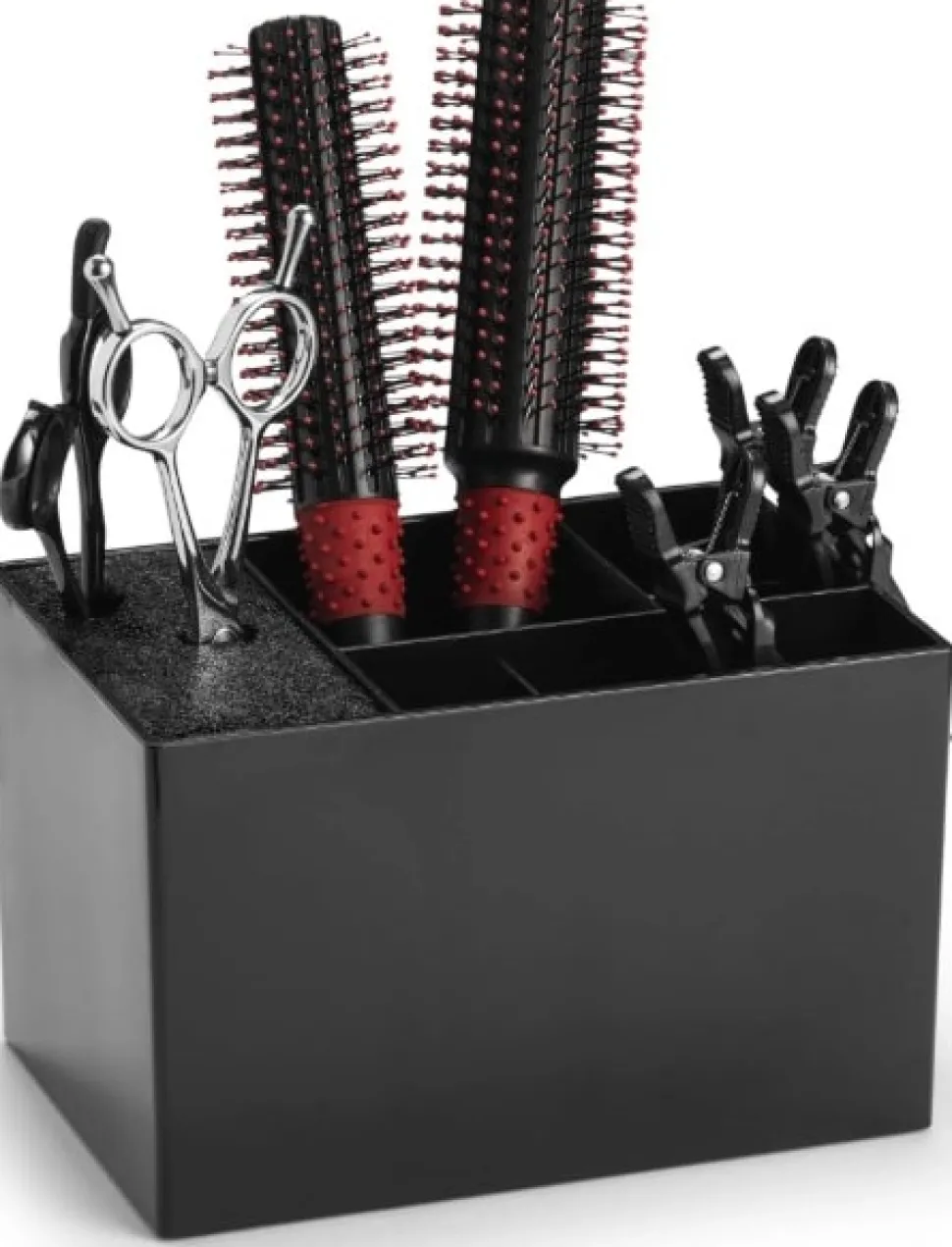 Oplev den stilfulde og funktionelle “Scissor & Accessorie Stand” i sort. Denne stand er ideel til frisører og stylister, der søger en praktisk måde at organisere deres værktøjer på.