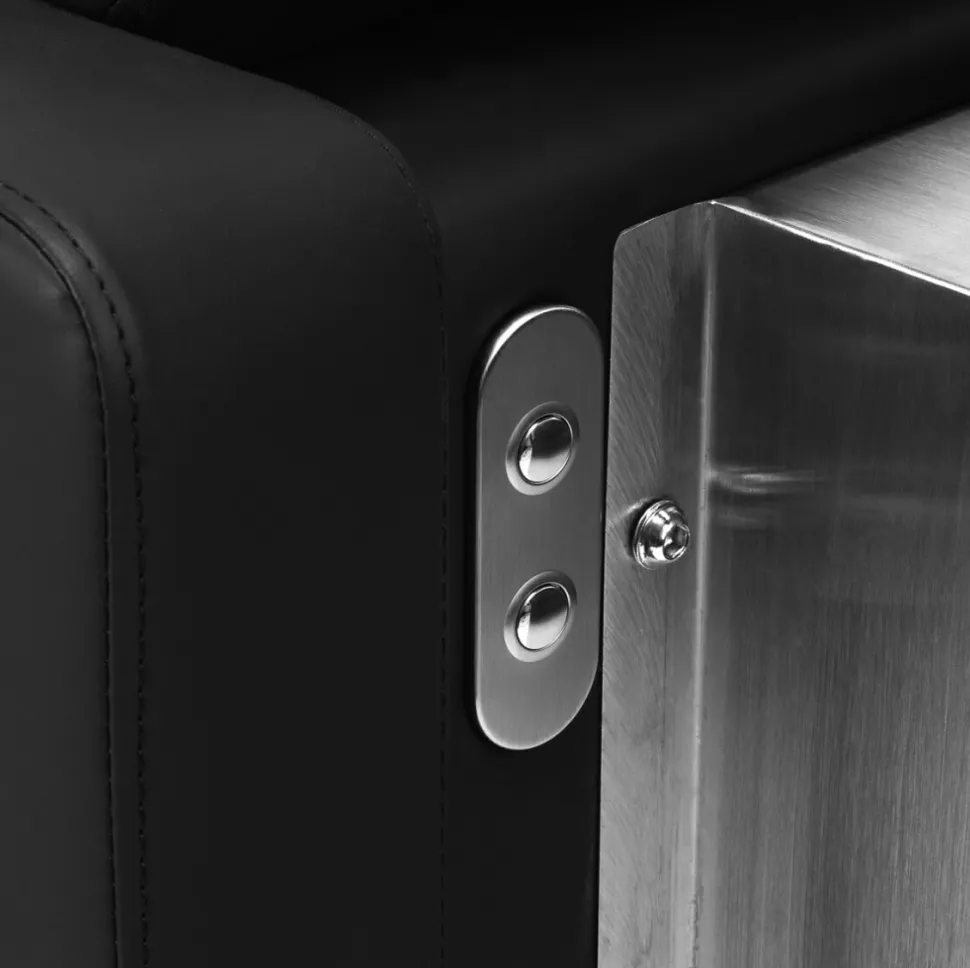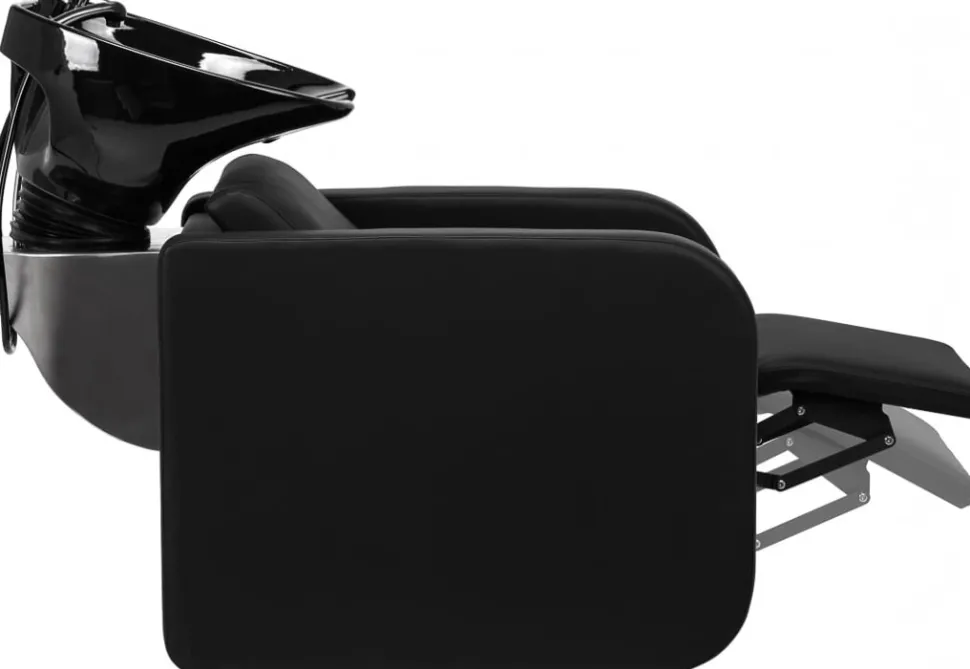 Gabbiano Sylvia vaskeenheden er designet med fokus på behagelig udførelse af pleje- eller farvebehandlinger samt at give klienten en komfortabel position under længere procedurer. Den enkle og geometriske form giver et moderne præg, mens sædeets og armlænenes lige linjer bidrager til et moderne udtryk. Ryggen er vippet i en optimal vinkel for fremragende støtte til rygsøjlen. Det profilerede sæde er fyldt med holdbar skum, hvilket sikrer høj komfort, og det polstrede armlæn muliggør korrekt skulderpositionering. Det syntetiske læder i sorte nuancer sikrer lang holdbarhed og nem rengøring. Det elegante, minimalistiske look giver interiøret et unikt præg. Sættet inkluderer komplette fittings i sorte og krom farver, herunder en vandhane, bruserhoved og dedikerede slang til at give et komplet arbejds-sæt.
