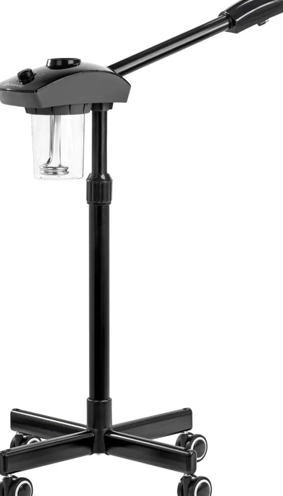 Dysen kan roteres, hvilket giver fleksible indstillingsmuligheder under behandlingen. Den firearmede base med gummibelagte hjul sikrer god stabilitet og gør det nemt at flytte apparatet rundt i rummet.