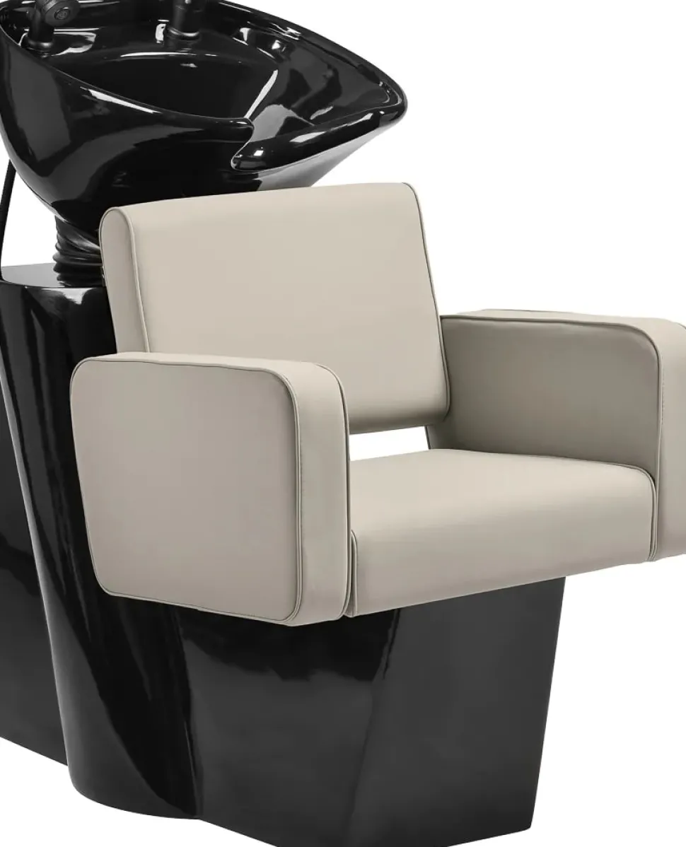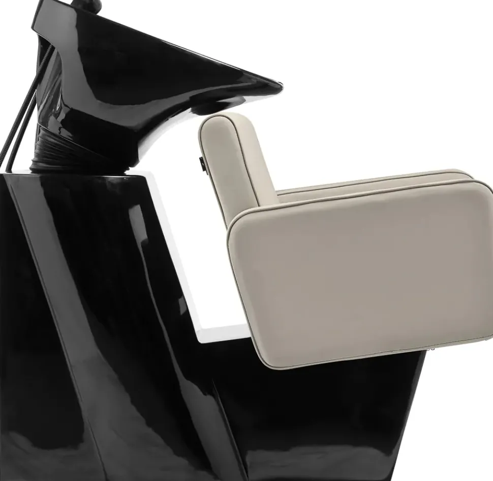 Den dybe keramiske skål i elegante sorte nuancer er designet til at minimere sprøjt under behandlinger. Den vipbare skål muliggør præcis justering for hver kundes komfort. Lavet af holdbar keramik, modstår skålen misfarvning, ridser og skader fra kemikalier, og dens glatte overflade er nem at rengøre. Den ergonomisk formede krave giver blid hovedstøtte, mens den sorte plastkant forhindrer den kolde berøring af keramikken for øget komfort.