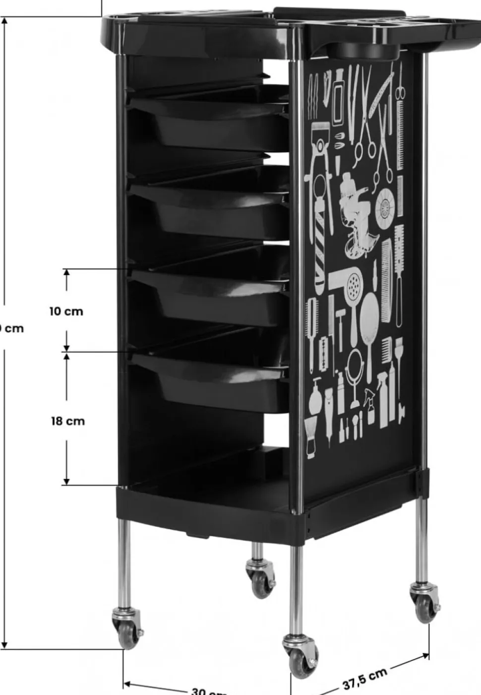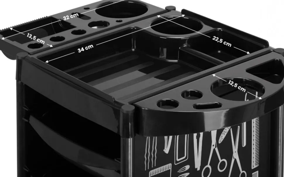 - Funktionel Opbevaring: Ideel til opbevaring af frisørredskaber, produkter og tilbehør.