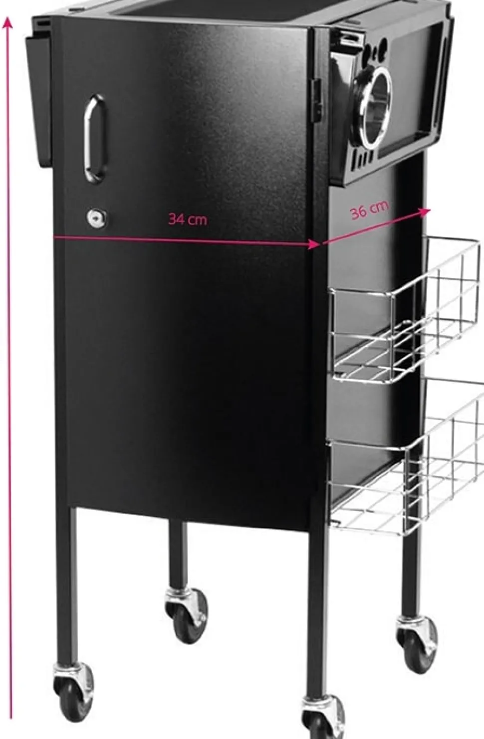 Oplev denne elegante hårhjælper med et låsbart skab, designet til at være både praktisk og rummelig. Denne stilfulde løsning er ideel til enhver frisørsalon, hvor komfort og æstetik er i fokus.