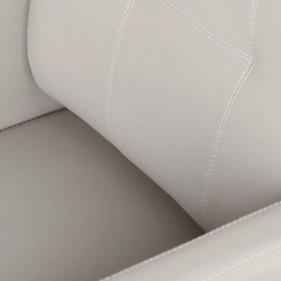 Polstret med grå økolæder af højeste kvalitet, som både er slidstærkt og let at rengøre.