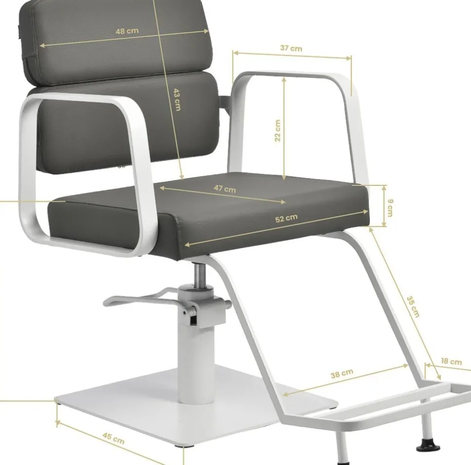 - Hydraulisk højdejustering (49–61 cm) – kan justeres jævnt, selv når kunden sidder i stolen.