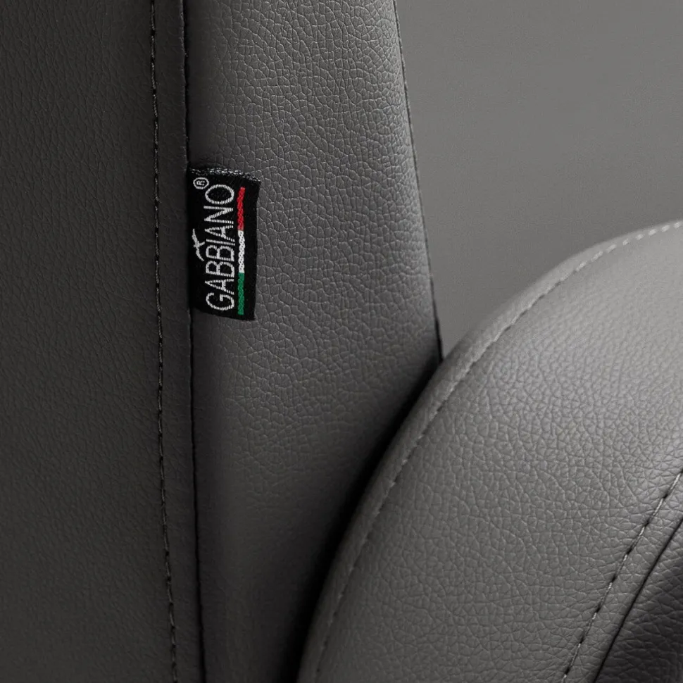 - Polstring i syntetisk læder (sorte nuancer) – slidstærkt, fugtresistent og nemt at vedligeholde.