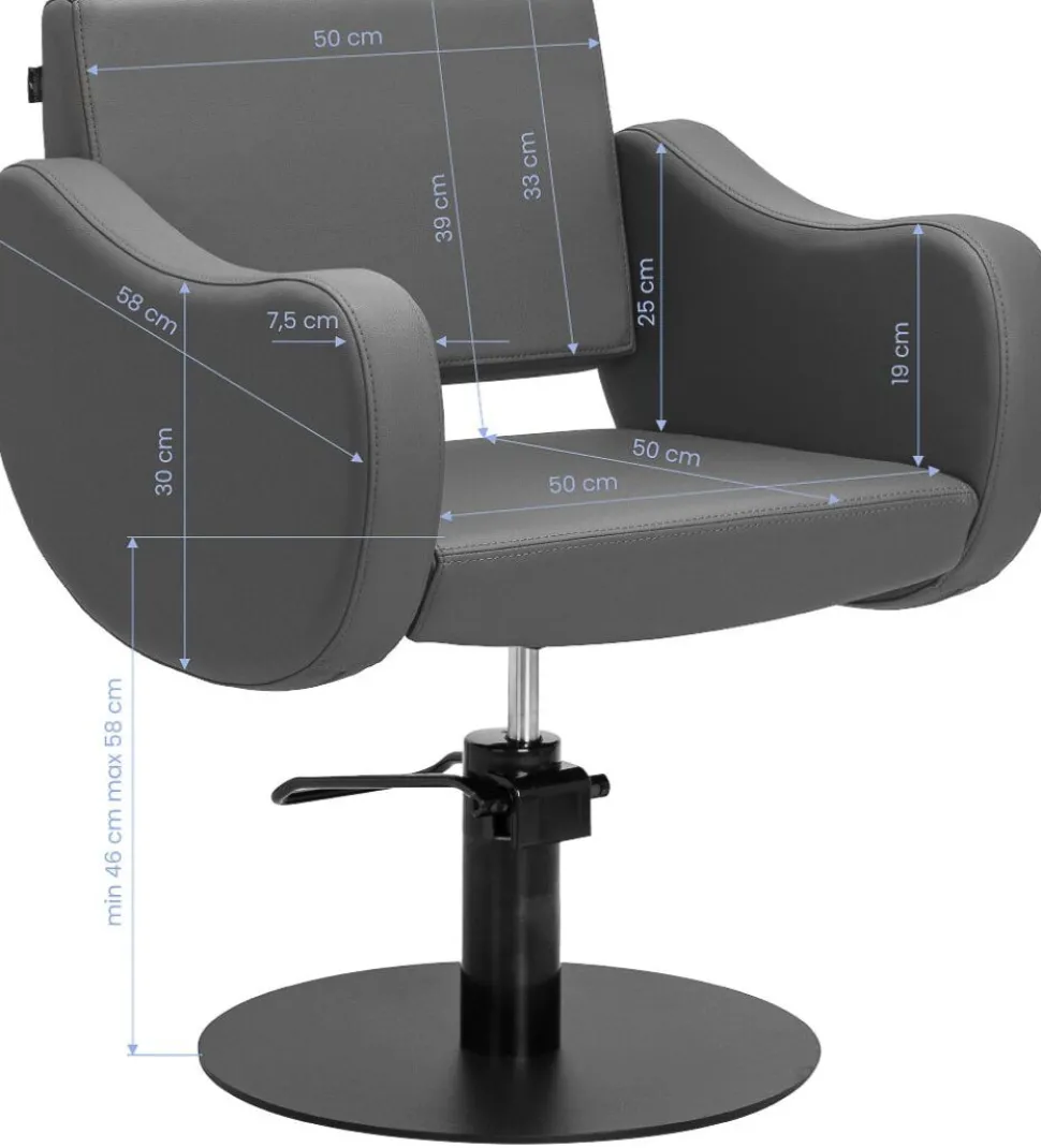 Gabbiano Sewilla frisørstolen kombinerer funktionalitet med tidløs æstetik. Den solide hydrauliske lift giver jævn højdejustering og gør det nemt at tilpasse stolen til stylistens behov. Det ergonomiske sæde, komfortable ryglæn og markant formede armlæn sikrer optimal komfort – selv under længere behandlinger. Det moderne, minimalistiske design passer perfekt ind i både klassiske og moderne salonmiljøer.