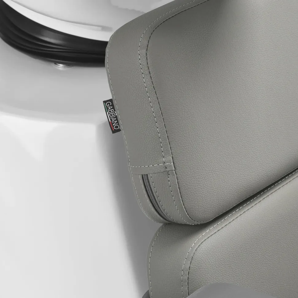 Gabbiano er et italiensk luksusbrand inden for hårdæd- udstyr og møbler, der kendetegnes ved pålidelighed, kvalitet og æstetik i håndværket samt høj brugskomfort. Udvalget omfatter et bredt sortiment af funktionelt salonudstyr som stole, vaske og infrazoner. Porto-hårvaskeenheden er en stilfuld og praktisk løsning til den professionelle frisørsalon og danner grundlag for grundlæggende behandlinger såsom vask, farvning og regeneration. Den integrerede design sikrer behagelighed for både frisøren og klienten, mens den visuelt interessante stol tilfører interiøret et unikt præg.