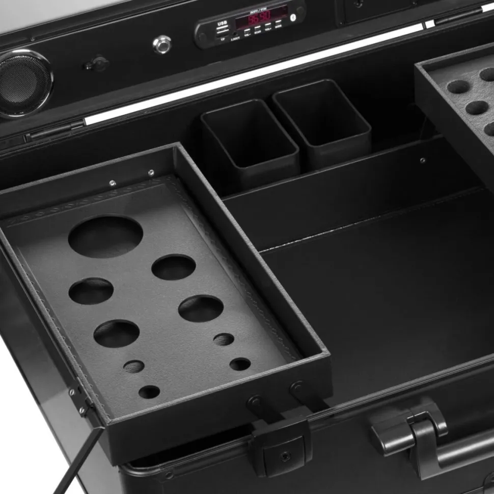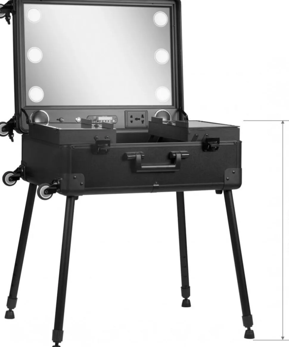 Funktionel kosmetikæske i form af en komfortabel, portable kuffert med hjul. Den perfekte løsning til mobile beauticians eller makeup-artister. Kufferten er meget rummelig og har en række nyttige funktioner: