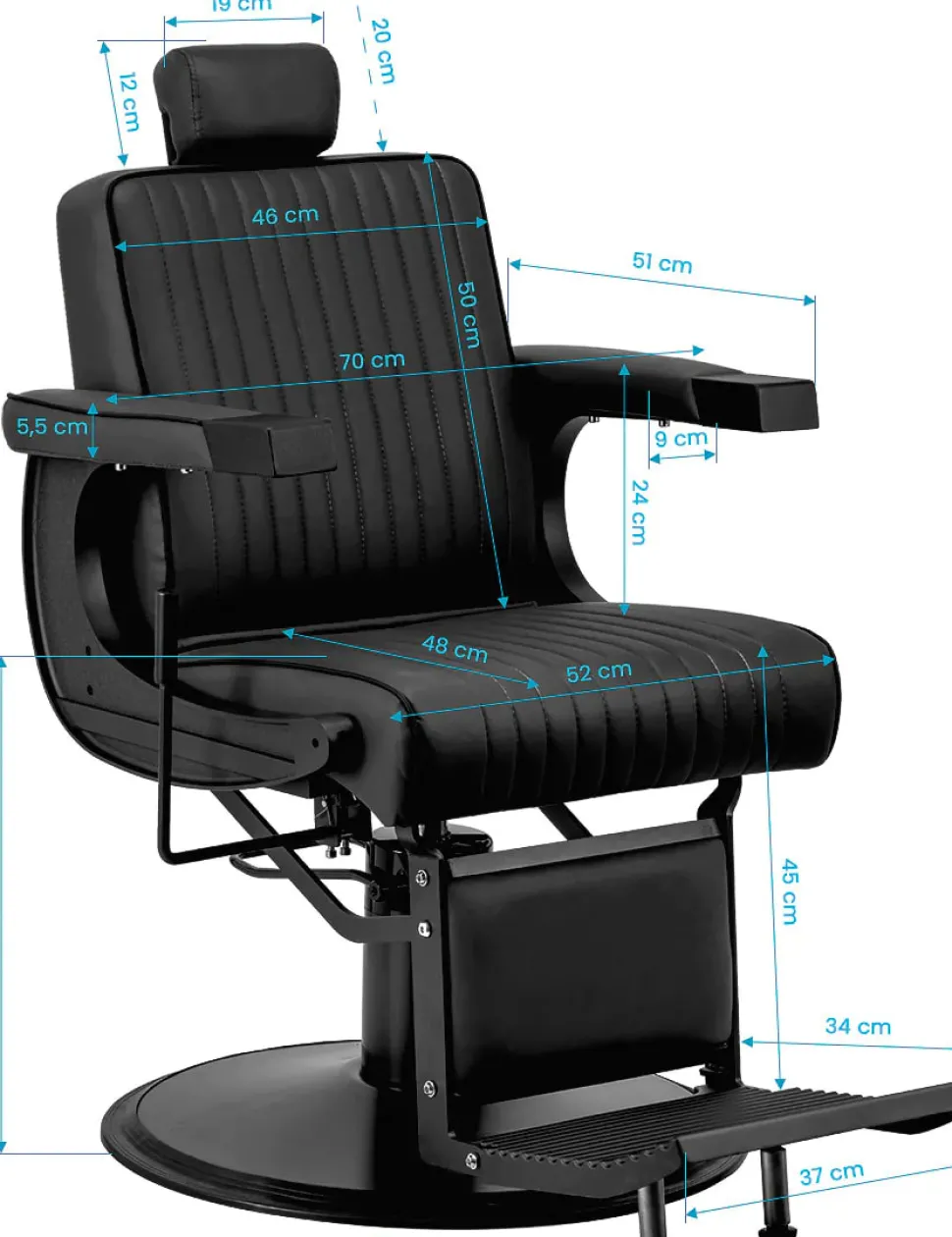 Stolen giver maksimal komfort gennem blød skumfyldning, ergonomisk ryglæn og fuld drejelighed, hvilket sikrer fri bevægelse for frisøren. Den robuste konstruktion og modstandsdygtige, matte syntetiske læderpolstring gør stolen både behagelig, slidstærk og let at rengøre.