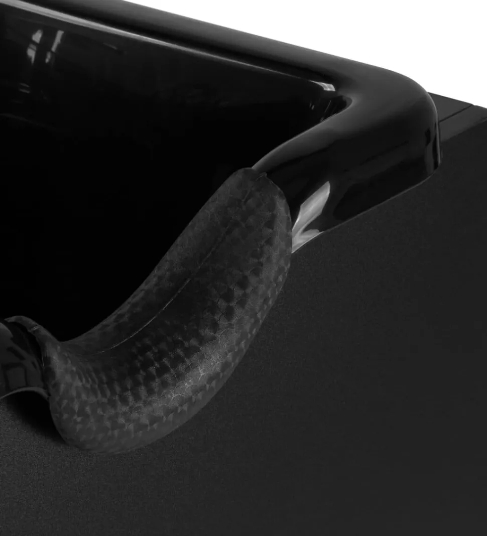 Den er fremstillet af møbelplader i dyb sort med kromdetaljer. Vaskeskålen er ergonomisk designet, hvilket giver kunderne en luksuriøs oplevelse.