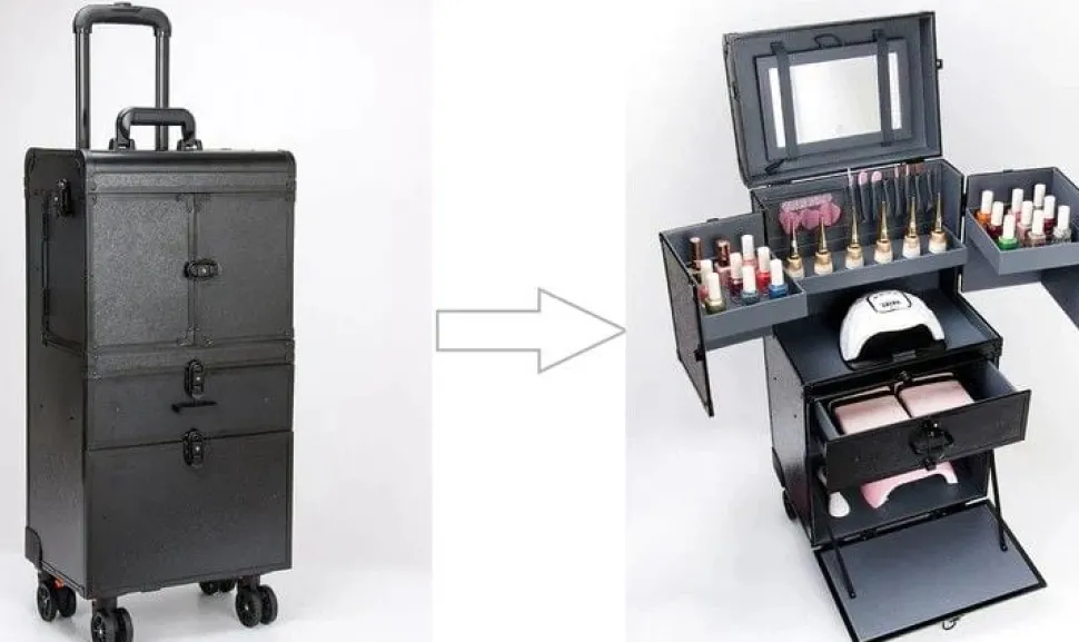 Denne professionelle trolleykuffert fra G&BPRO kombinerer funktionalitet og holdbarhed i ét kompakt design. Med dobbelte opbevaringsrum, glidende hjul og robust konstruktion giver den nem adgang til alt dit udstyr – perfekt til mobile stylister, makeupartister og frisører på farten.