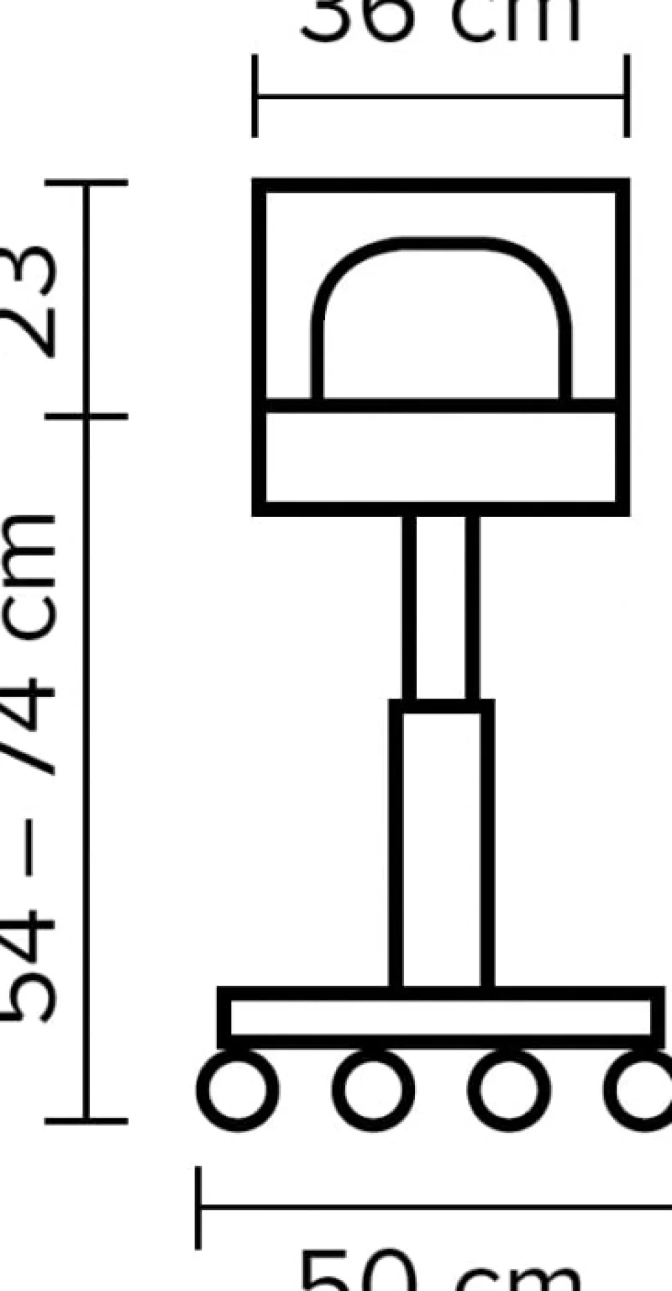 - Mål (BxHxD): 50 x 77-97 x 50 cm; sæde 36 x 30 cm, ryglænshøjde 23 cm