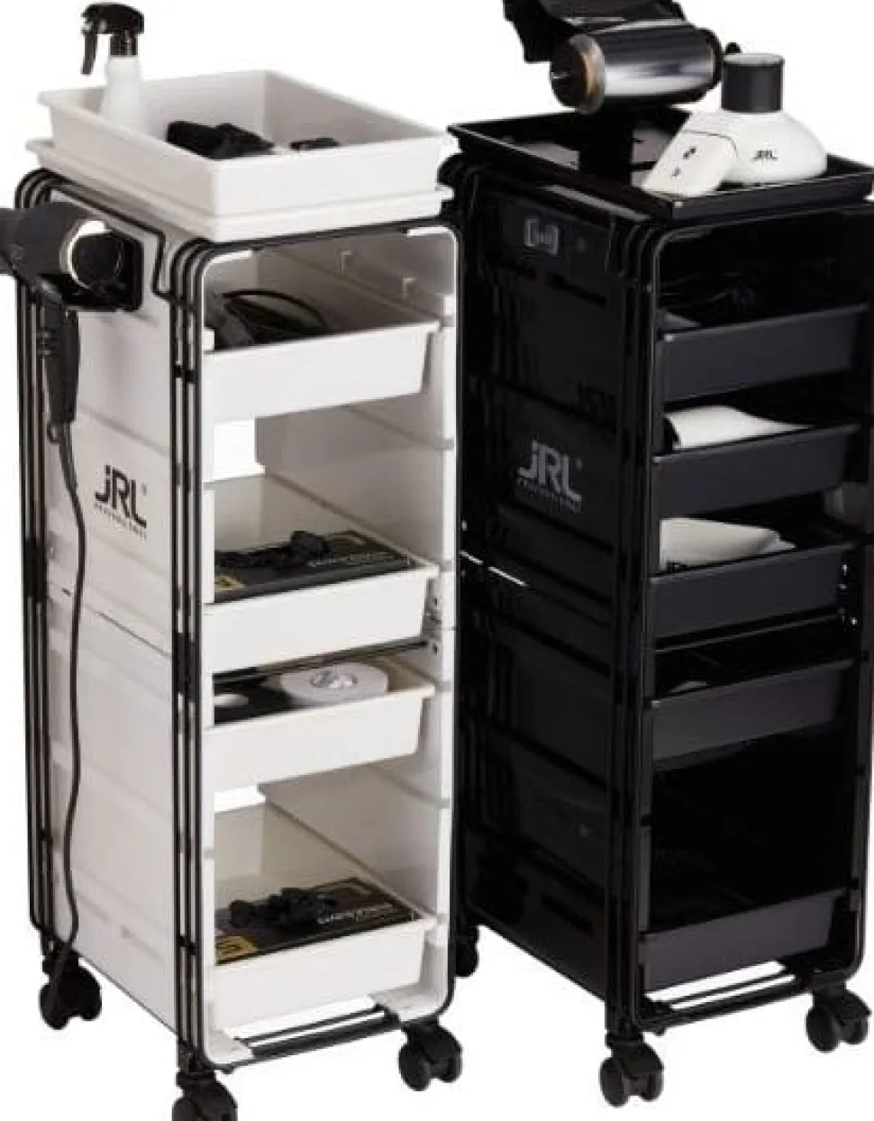 - Tørrings- og stylingudstyr kan nemt organiseres og transporteres mellem arbejdsstationer