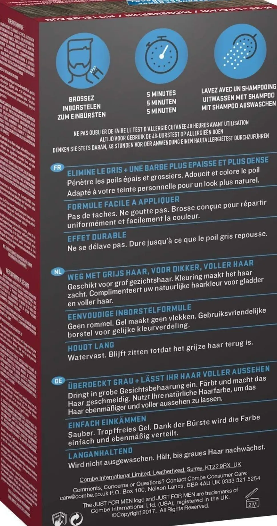 Bemærk at skægfarven ikke ændre din naturlige skægfarve, men kun de grå hår i skægget så du opnår en naturlig nuance i skægget.