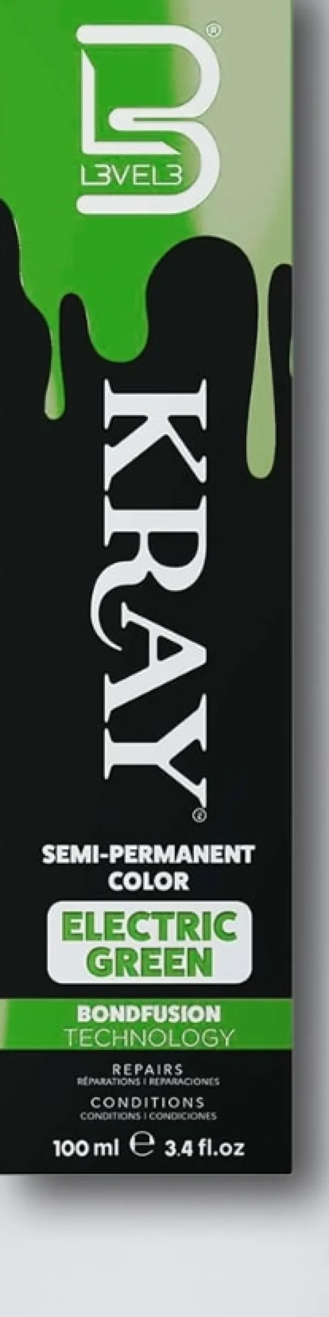 - L3VEL3 KRAY Semi-Permanent Color er din løsning for at skabe dristige, levende looks med lethed. Beriget med nærende ingredienser og BondFusion Technology, giver det dig friheden til at eksperimentere med en bred vifte af nuancer, mens dit hår forbliver sundt og beskyttet.