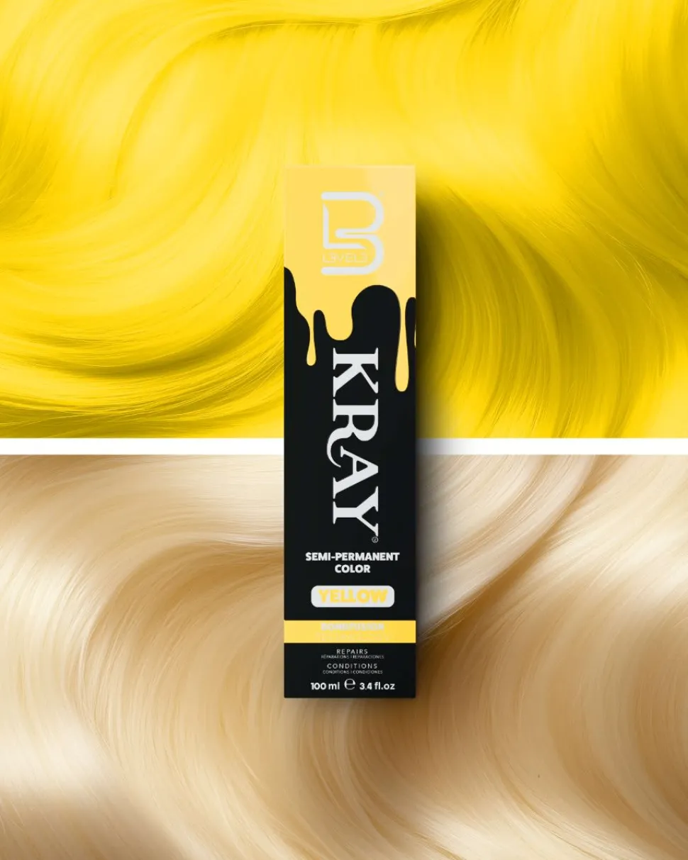- L3VEL3 KRAY Semi-Permanent Color er din løsning for at skabe dristige, levende looks med lethed. Beriget med nærende ingredienser og BondFusion Technology, giver det dig friheden til at eksperimentere med en bred vifte af nuancer, mens dit hår forbliver sundt og beskyttet.