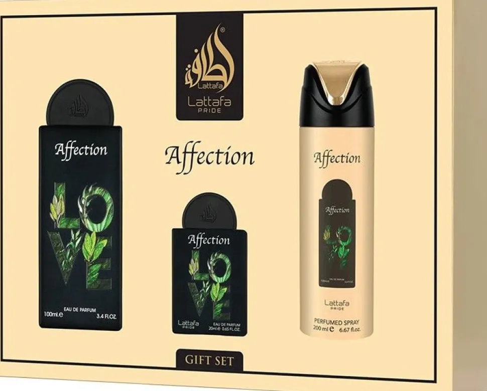 Lattafa Pride Affection Gift Set udtrykker ømhed, elegance og forbindelse, og omslutter bæreren med skønhed og ynde. Dens strålende og moderne karakter gør den uforglemmelig.