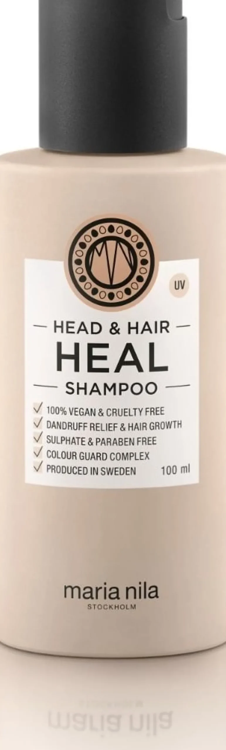 Maria Nila Head & Hair Heal Shampoo er et beroligende og hårvækststimulerende shampoo med naturlig aloe vera-ekstrakt og Piroctone Olamine. Det forhindrer skæl og behandler hovedbundsproblemer. Ingredienserne stimulerer hårsækkene for øget hårvækst og forhindrer hårtab. Head & Hair Heal Shampoo har en allergivenlig parfume, der er udviklet til ekstra sensitiv hud, og har en unik blomsterduft af hvid jasmin, galbanum og lindeblomst. Dens Color Guard Complex beskytter farven ved at modvirke UV-stråling og frie radikaler.