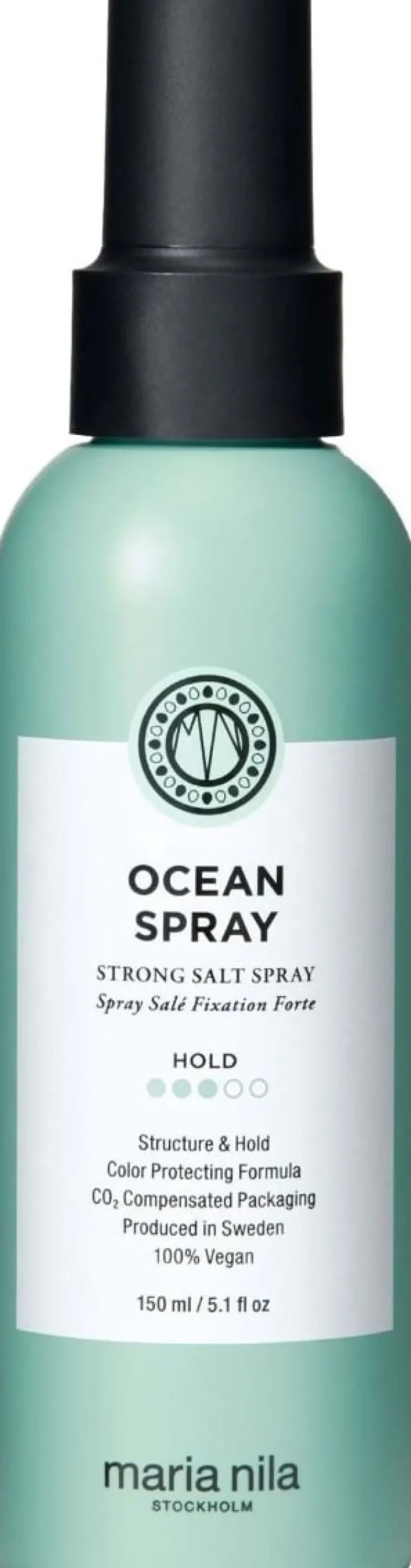 Maria Nila Ocean Spray 150 ml er en saltvandsspray, der skaber tekstur, giver ekstra hold og har en mat, ikke-klæbrig finish. Ocean Spray er perfekt til at style naturlige strandbølger og kan bruges som forberedelsesspray til langvarige opsætninger. Takket være den høje koncentration af naturligt salt er den velegnet til både langt og kort hår. Ocean Spray har en frugtig duft af æble og abrikos. Colour Guard Complex hjælper med at bevare farven ved at beskytte dit hår mod UV-stråler og frie radikaler.