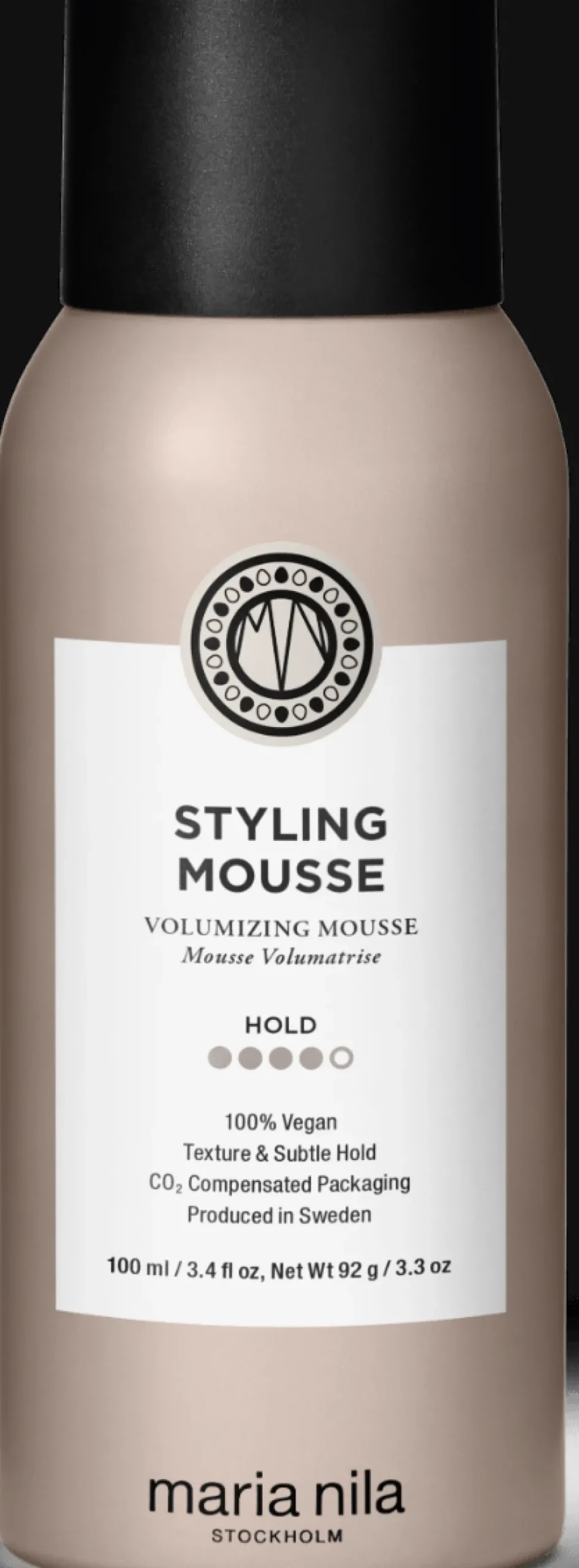 Maria Nila Styling Mousse er en voluminiserende mousse med medium hold, som giver struktur til håret og efterlader det sundt og skinnende. Moussen er nem at børste ud og efterlader ikke håret klæbrigt. Produktet kan bruges som en base til opsætninger, inden du glatter eller krøller håret. Den er perfekt til naturligt krøllet hår, der har brug for ekstra hold.