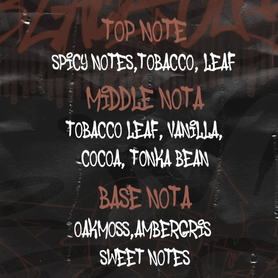 Denne duft præsenterer en uforglemmelig signatur med orientalske noter, der kombinerer med opulente tobaksblade. Hjerte noter af cremede tonkabønner, tobaksblomster, vanilje og kakao giver dybde, mens basen afslutter med tørrede frugter og sød træsaft. -