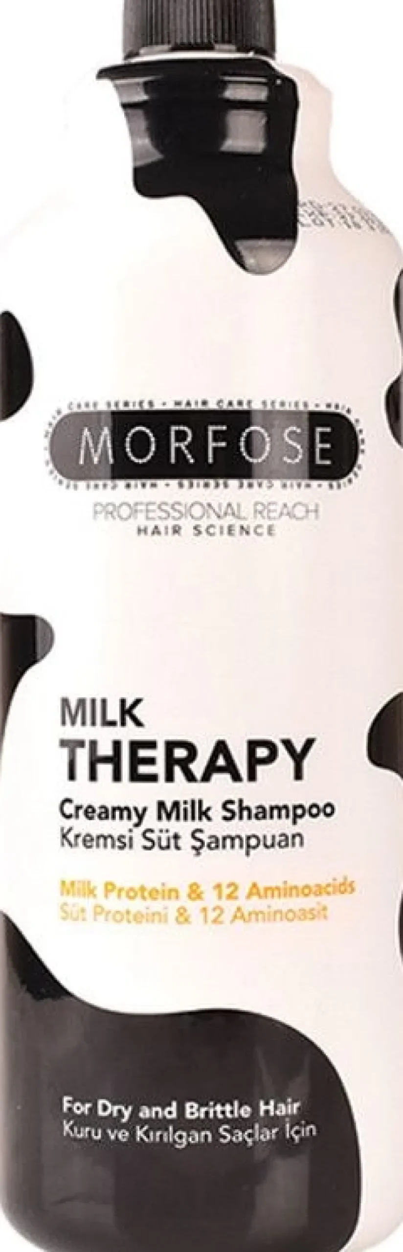 Morfose Milk Therapy Creamy Milk Shampoo indeholder mælkeprotein og 12 essentielle aminosyrer takket være sin cremede mælkestruktur. Den specielt udviklede formel renser dit hår, mens den dybt fugter det fra rod til spids.