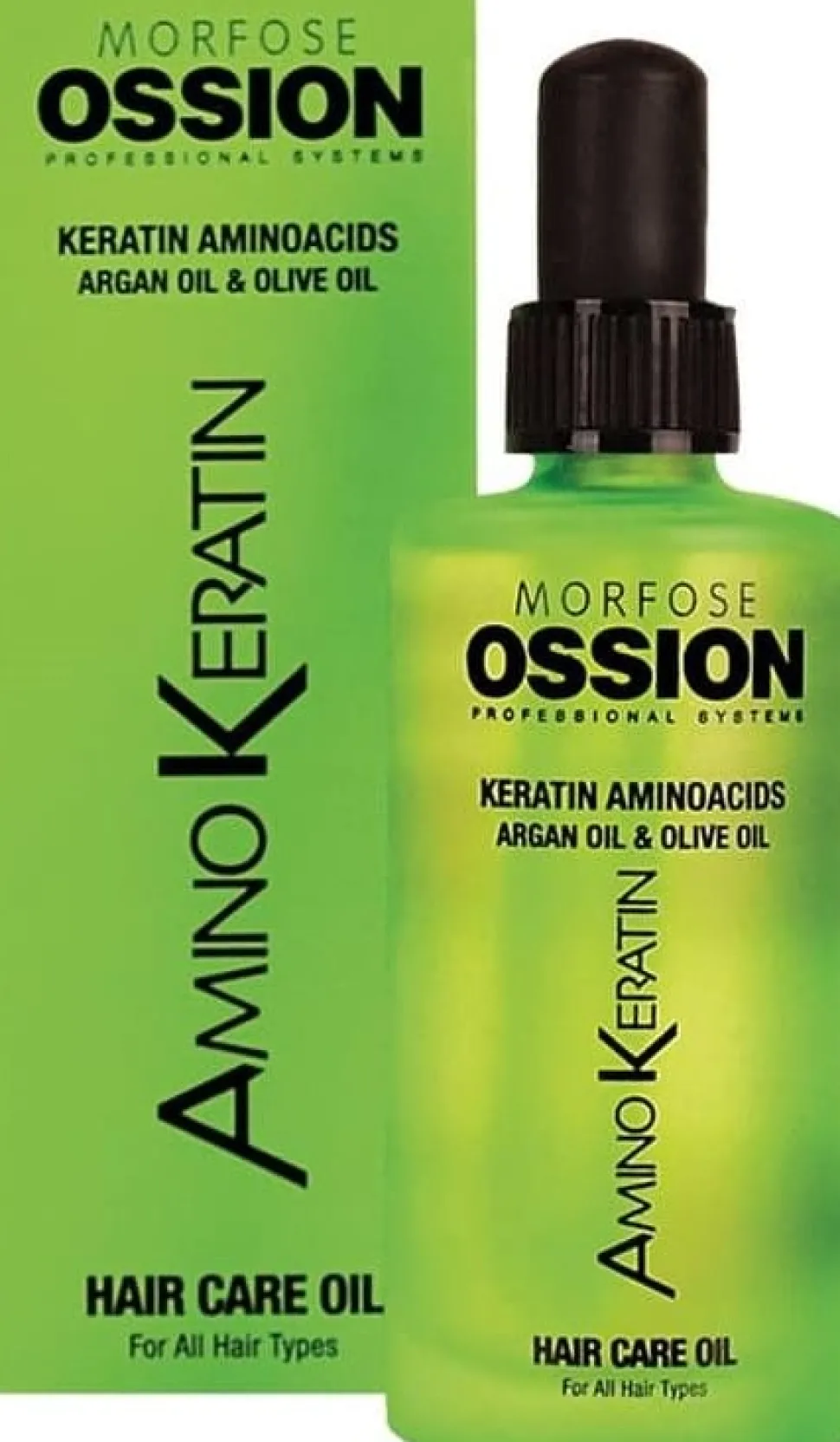 Ossion Amino Keratin Hair Care Oil er beriget med keratin, aminosyrer og arganolie, designet til at pleje håret uden at tynge det ned. Den specielt udviklede formel hjælper med at beskytte hårets ydre lag mod miljømæssige faktorer og forhindrer frizz.