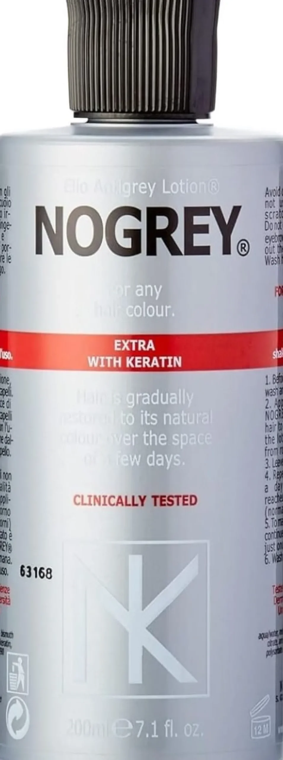 Anti-grå lotion – NK Nogrey er velegnet til alle hårfarver. Hår, der har tendens til at blive gråt, takket være den revolutionerende og fremragende effekt af dette produkt genoptager hårfarven gradvist sin naturlige farve efter få dage. Virker allerede fra de første applikationer. Regelmæssig anvendelse en eller to gange om ugen letter reduktionen af grå hår og forhindrer det i at vende tilbage.