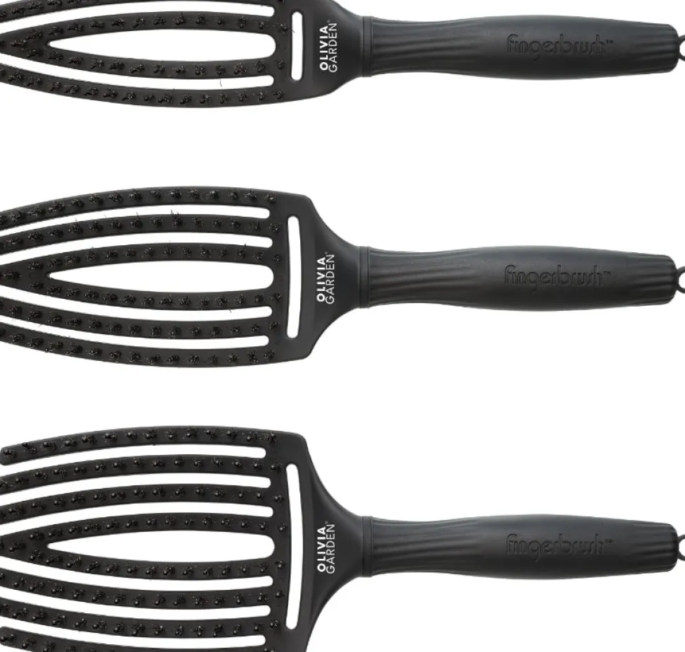 - Fingerbrush er professionelle hårbørster af høj kvalitet med en unik, skalp-omfavnende buet form og ventileret børstehoved, der giver smukke, naturlige stylingresultater. Den særlige blanding af nylon og 100 % svinebørster gør den ideel til styling, børstning og tjek.