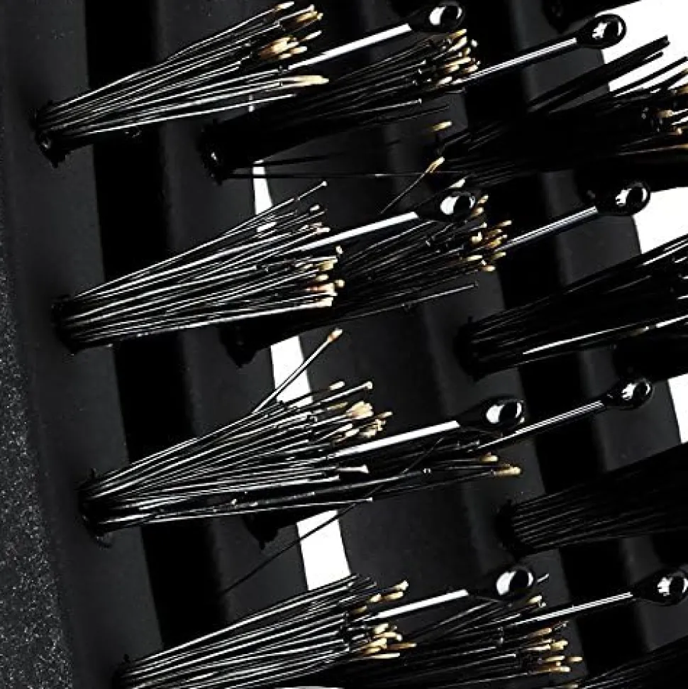 - Nylon børster: Udviklet til at glatte og reducere frizz, mens de tilføjer glans til dit hår.