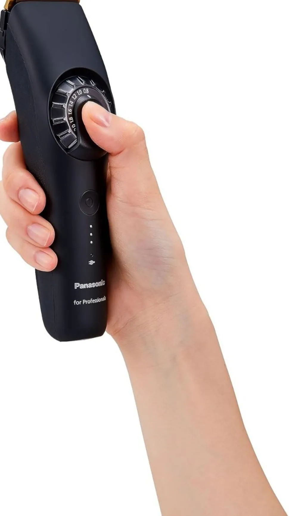 Panasonic ER-DGP90 er i øjeblikket den bedste og mest kraftfulde Panasonic professionelle hårklipper. Et nyt batterisystem og den lineære motor 2.0 med konstant kontrol tillader 150 minutters kontinuerlig drift og konstant klippeydelse uanset hårtæthed. Med drejeknappen til justering af skærelængde kan skærelængden justeres endnu mere præcist i 7 trin fra 0,8 mm til 2,0 mm – og meget bekvemt under klipning (enhåndsbetjening). 4 afstandkamme tillader 8 skærelængder fra 3 til 25 mm. Kulfiber og titanium-coated X-taper Blade 2.0 barberblad med 45° skærevinkel muliggør en knivskarp, super grundig klipning i tørt såvel som vådt hår, fine konturer eller komplette maskinklip.