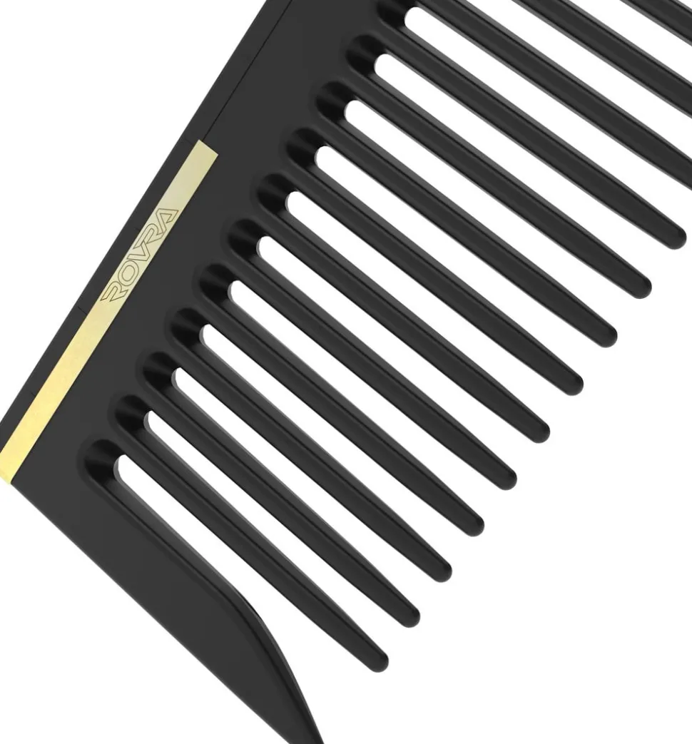 ROVRA Styling Comb er en favorit blandt topfrisører for sin præcision, fleksibilitet og holdbarhed. Fremstillet af varmebestandig plast af høj kvalitet, der tåler op til 220∘, leverer den stabil kontrol og jævn håndtering til detaljeret styling og skærearbejde. De fine tænder og den glatte, antistatiske overflade giver ensartet spænding i håret, så du kan arbejde rent, præcist og effektivt — i salon såvel som derhjemme.