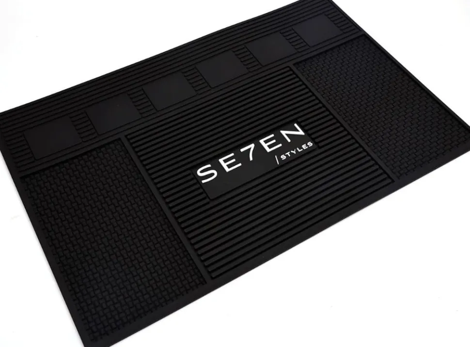 Se7en Styles Magnetic Mat er en fantastisk måtte til at opbevare alle dine redskaber, læg alle dine redskaber et sted under en barbering. Brug de 6 magnetiske trimmer/klipper pladser til at opbevare dine maskiner. Maskinerne skal vendes på hovedet så bladet på maskinen sættes fast magnetisk på måtten.