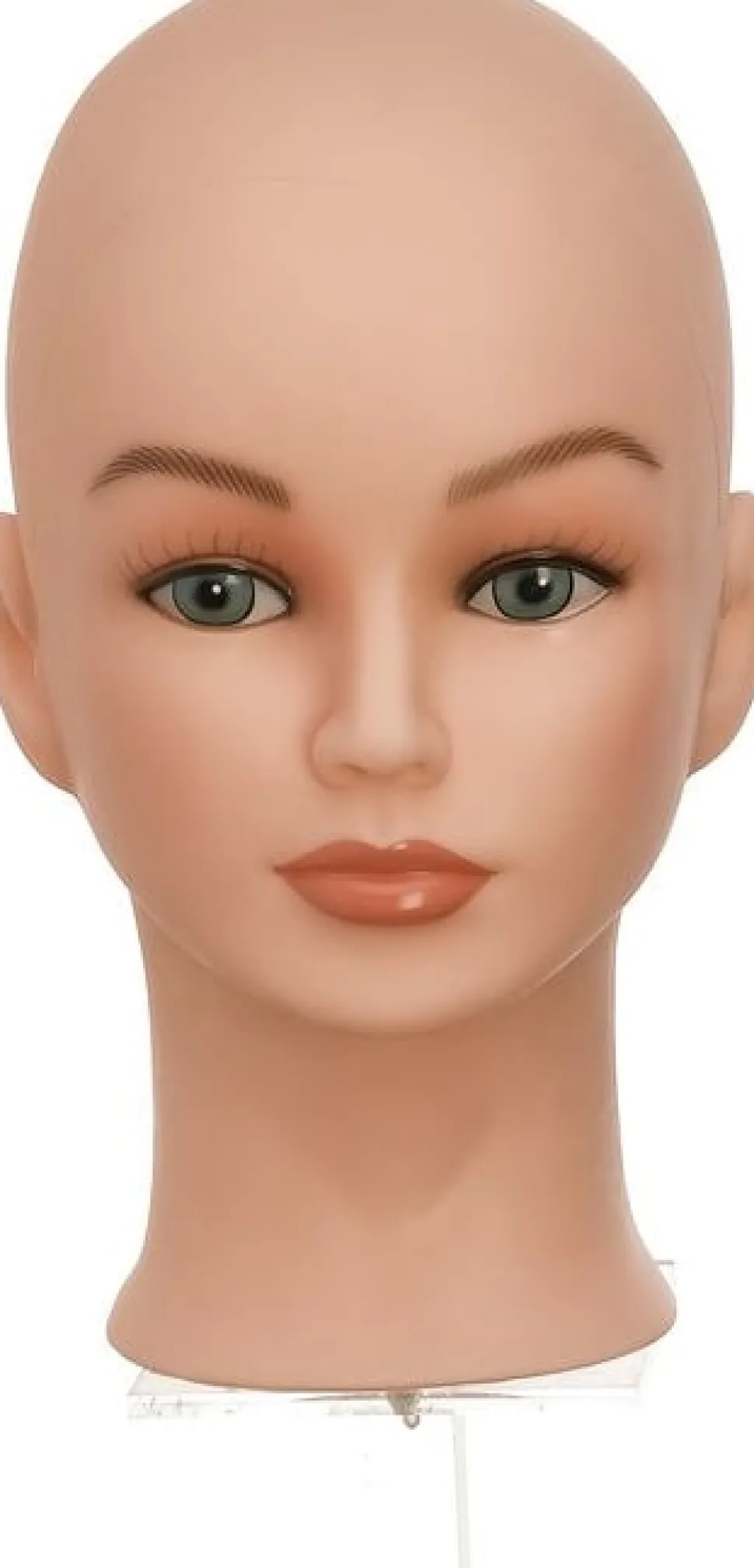 Skaldet træningshoved med make up.