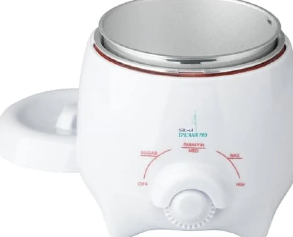 Elegant voksvarmer som opvarmer og holder små mængder af sukker, paraffin samt hårfjerningsvoks varmt ved en konstant temperatur. Apparatet har en aftagelig skål for lettere at rengøring. Volumen: 150 ml.
