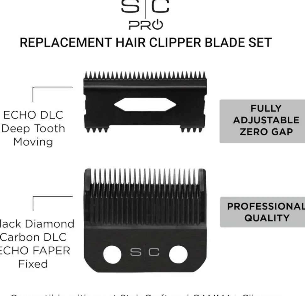 StyleCraft Replacement Echo Fixed DLC Hair Clipper Blade With DLC Deep Tooth Cutter Set er et professionelt barberblad, specielt designet til frisører og barbere.