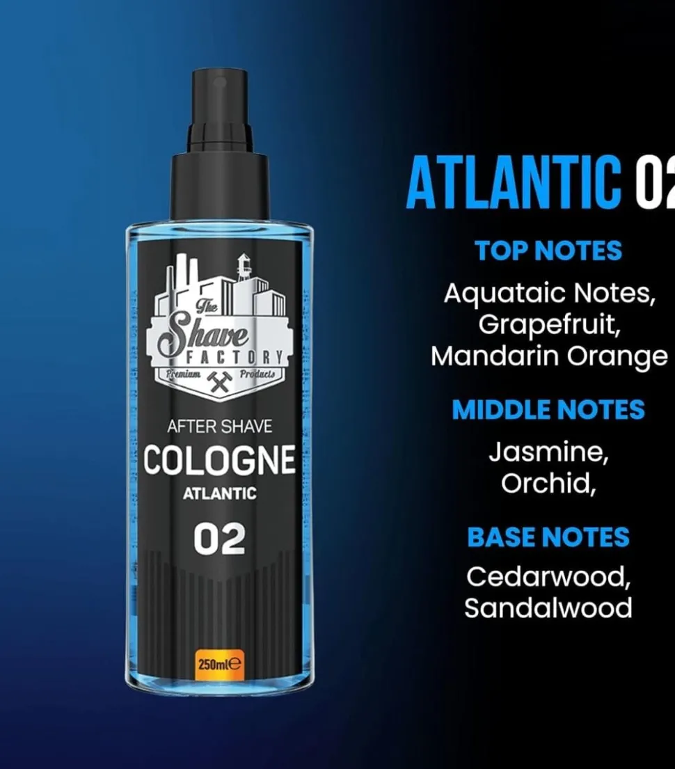 The Shave Factory tilbyder en serie af aftershave cologner, der imødekommer mænds behov efter barbering. Serien findes i 250 ml og 500 ml emballager, samt i 12 forskellige dufttyper, så du kan finde den, der passer bedst til dig. Aftershave colognen skaber en følelse af friskhed umiddelbart efter barbering og giver effektiv beskyttelse til de berørte områder. Den efterlader huden blød og glat, samtidig med at den plejer, beroliger og nærer huden efter barberingen.