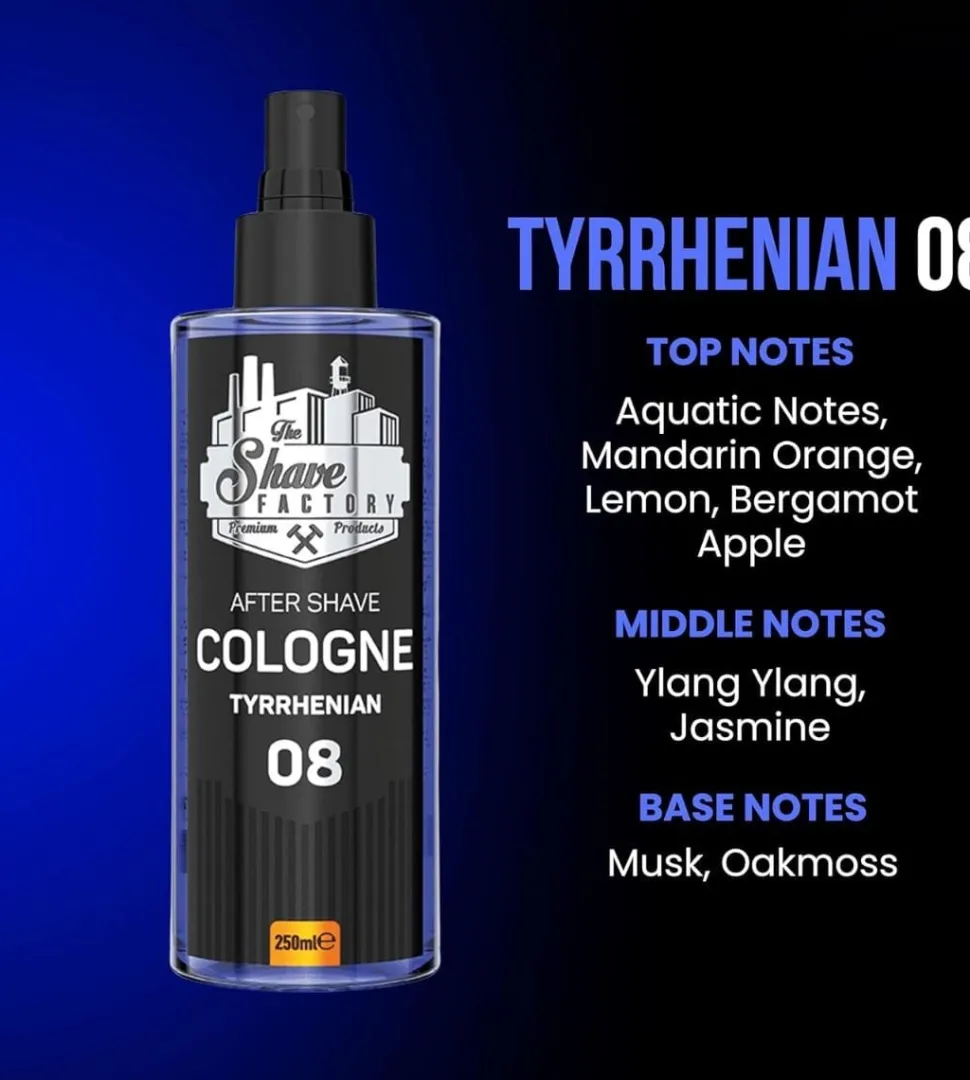The Shave Factory tilbyder en serie af aftershave cologner, der imødekommer mænds behov efter barbering. Serien findes i 250 ml og 500 ml emballager, samt i 12 forskellige dufttyper, så du kan finde den, der passer bedst til dig. Aftershave colognen skaber en følelse af friskhed umiddelbart efter barbering og giver effektiv beskyttelse til de berørte områder. Den efterlader huden blød og glat, samtidig med at den plejer, beroliger og nærer huden efter barberingen.