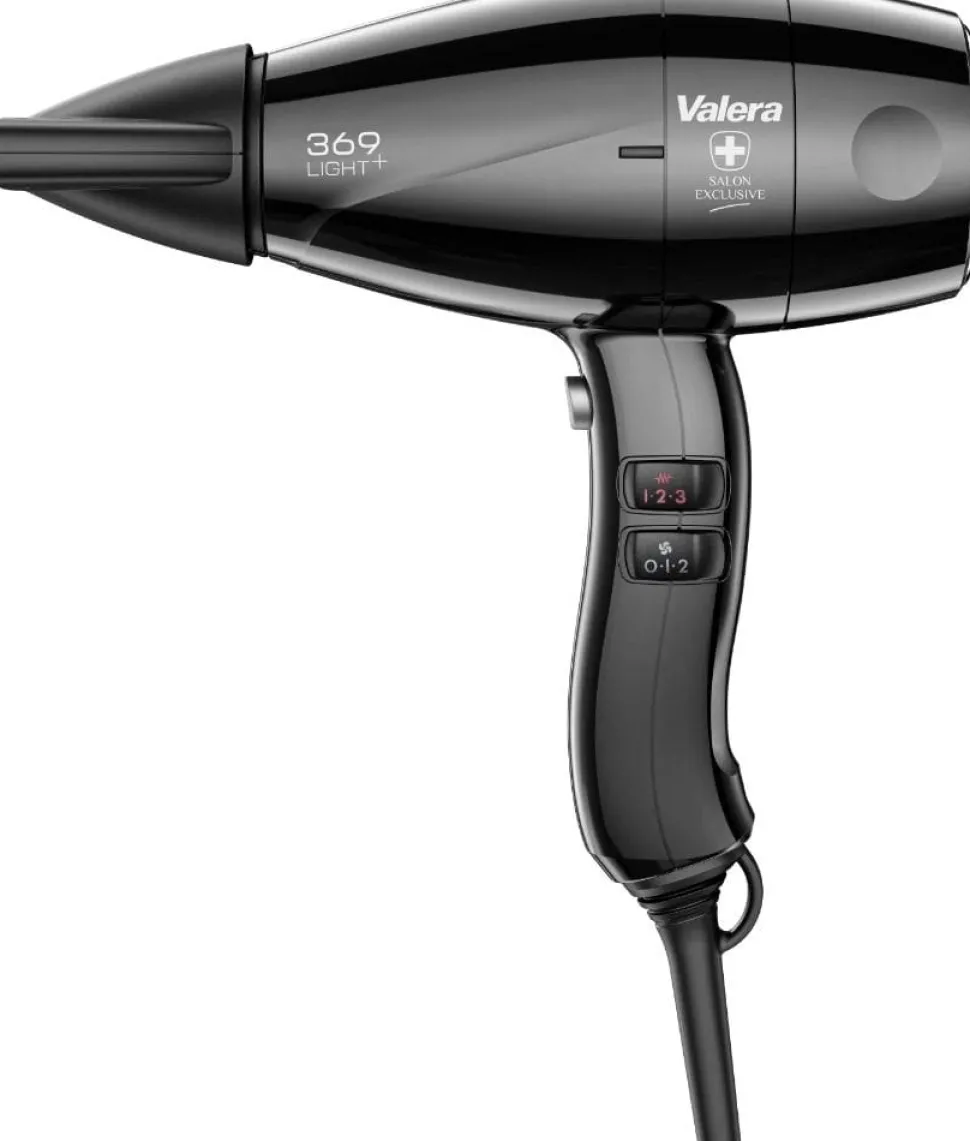 Den professionelle 369 Light Plus hårtørrer giver frisører den dokumenterede ydeevne som en vekselstrømsdrevet hårtørrer i et let og praktisk format. Den producerer en høj luftstrøm og lufttryk med en moderat vægt på kun 490 gram (uden kabel). Det perfekt afbalancerede og ergonomisk formede design i en kompakt størrelse giver et behageligt arbejde og ubegrænset kreativitet. Den integrerede Smart Airflow-teknologi leverer en kraftfuld, men støjsvag luftstrøm (kun 65 dB(A)). Valeras SANIFY-system sikrer et sikrere og sundere miljø i salonen. Backstop-systemet forhindrer hår i at blive fanget i ventilatoren og beskytter motoren mod nedbrud. 369 Light Plus er den hårtørrer, som frisører leder efter: pålidelig og professionel, let og ergonomisk.