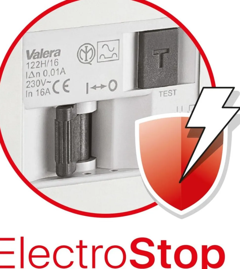 VALERA Hospitality har udtænkt et nyt koncept til brug i badeværelser og lancerer hårtørrere på markedet under navnet VALERA PROTECT. Disse apparater er udstyret med en ElectroStop fejlstrømsenhed (RCD) i vægholderen. Det minimerer risikoen for elektrisk stød fra elektrisk stød forårsaget af enhver potentiel lækstrøm (f.eks. at hårtørreren ved et uheld kommer i kontakt med vand). ElectroStop er essentielt i rum uden fejlstrømsenhed. Takket være dens nominelle differensstrøm på 10 mA er ElectroStop desuden meget mere følsomt og effektivt end de almindeligt installerede enheder, der er klassificeret 30 mA.