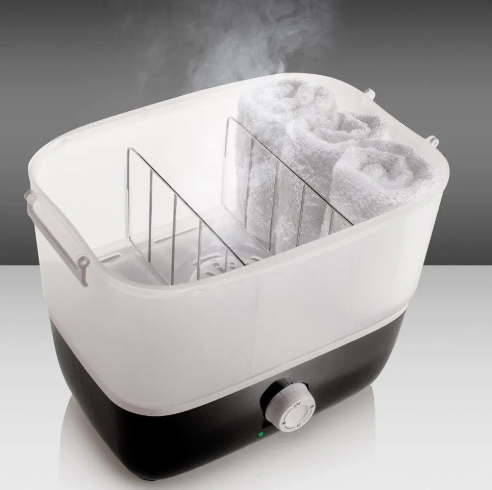 Towel Express Electric Steam Håndklædevarmer er et innovativt og uundværligt værktøj til din salon. Den er let og kompakt og udstyret med en aftagelig håndklædebakke. For at opvarme dine håndklæder har du en justerbar timer. Det virker med damp: det tager kun 10 sekunder at frigive det og i løbet af kort tid er dine håndklæder klar til brug.