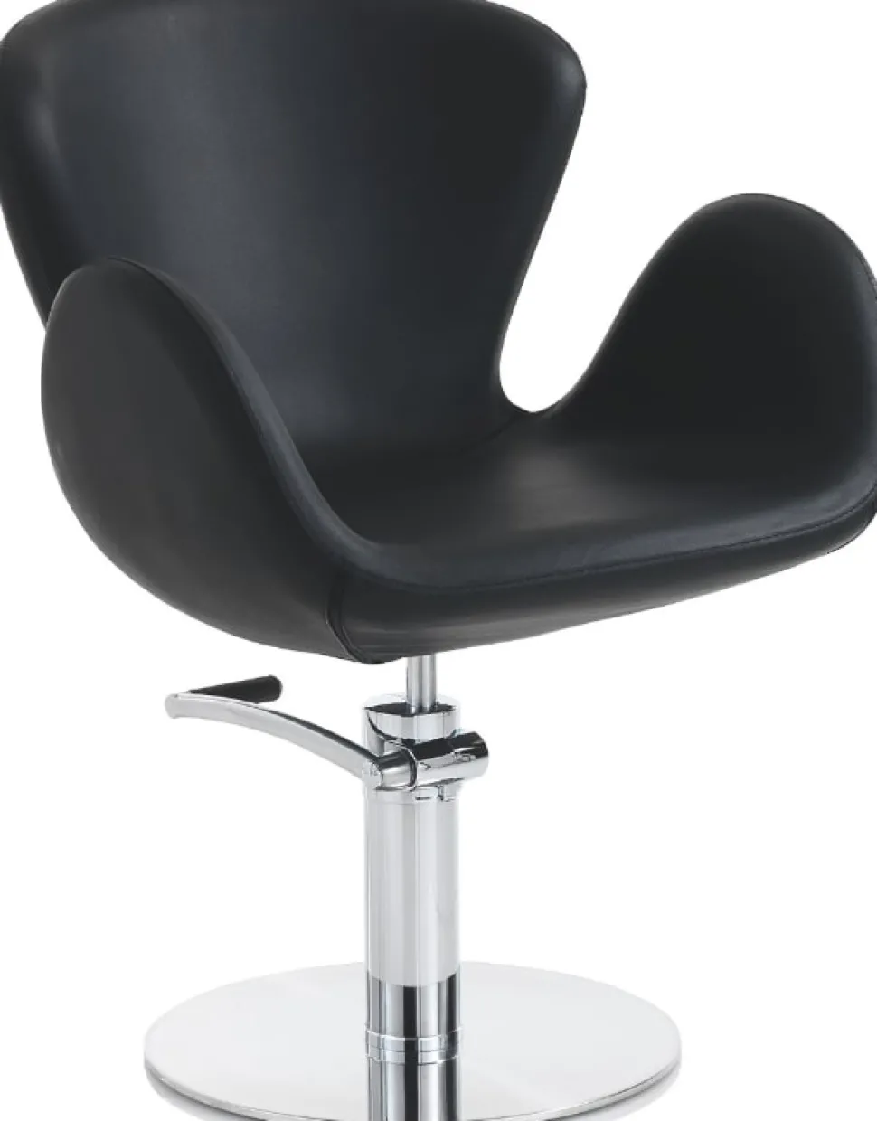 Løft salonoplevelsen med Charlotte-stolen. Den slanke, forkromede struktur og det sorte, syntetiske læder giver et sofistikeret udtryk, mens den bløde, organiske form sikrer høj komfort – selv ved lange behandlinger. Den forstærkede indre konstruktion og den hydrauliske drejemekanisme med bremse gør højde- og positionsjustering enkel og stabil.