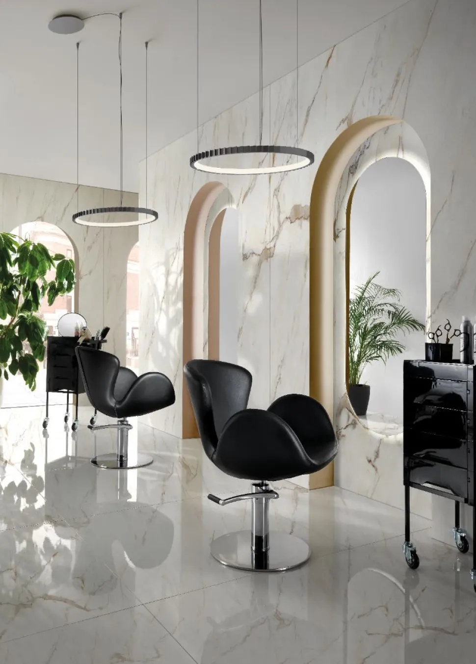 - Elegant, moderne silhuet, der løfter salonens æstetik