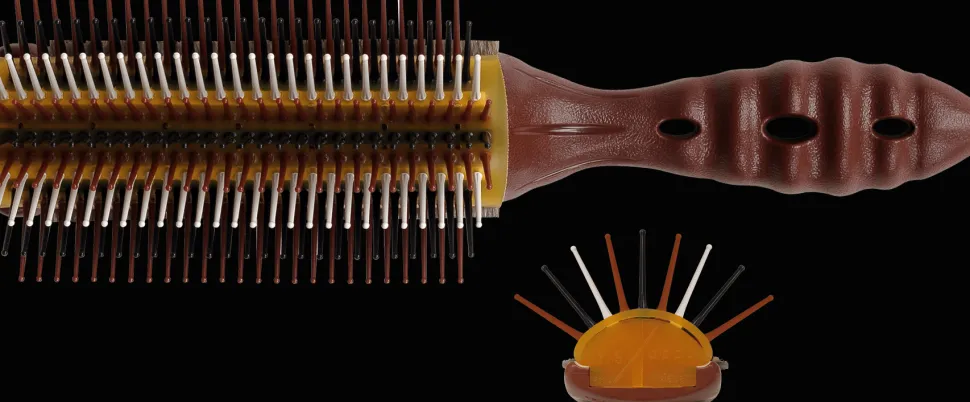 <li Runde børsteender for at beskytte hovedbunden