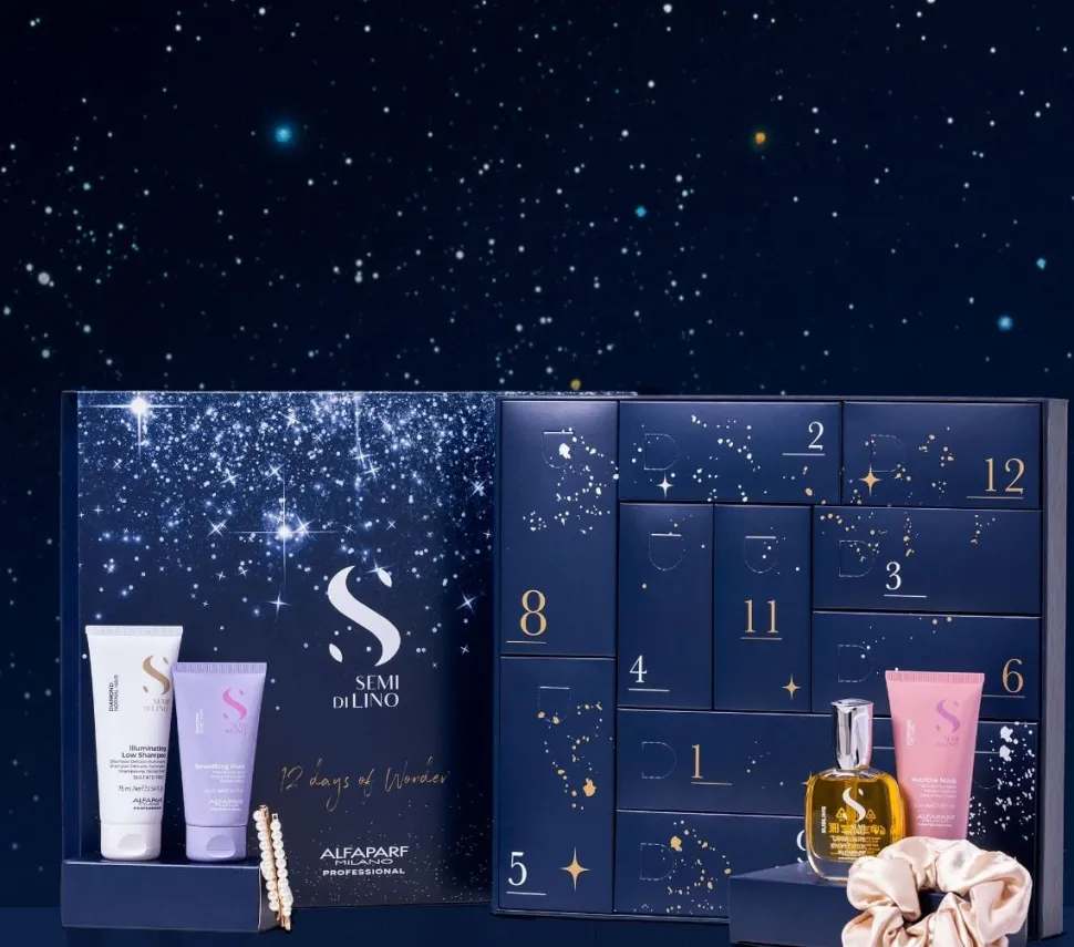 Alfaparf Milano Semi di Lino Julekalender – fordi dit hår fortjener et strejf af festlig magi.